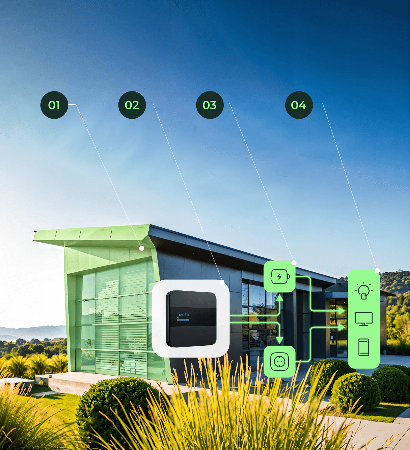 InverterMax AI converts this energy, directing it either to the grid or to storage